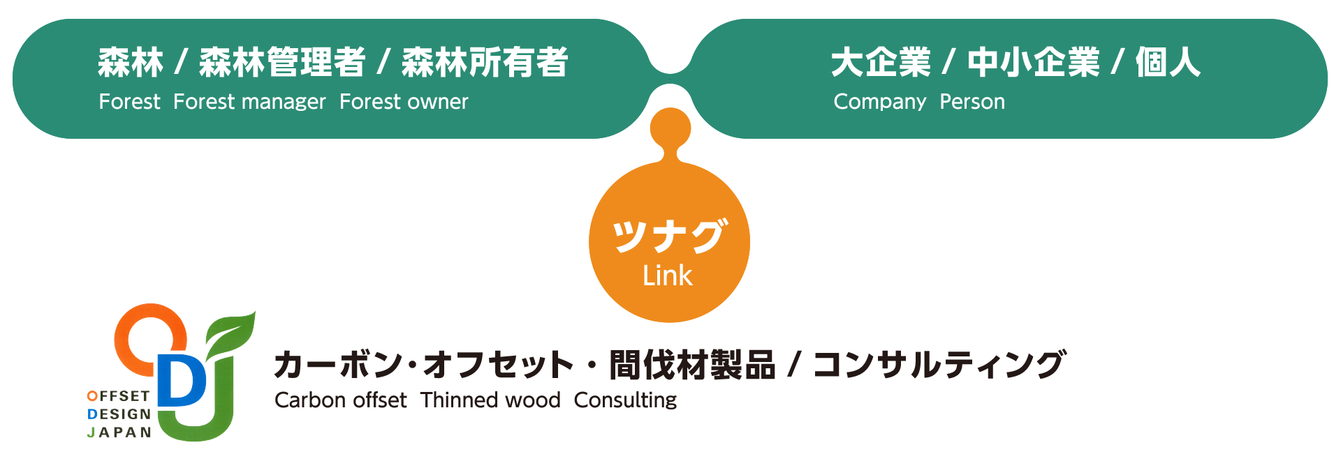株式会社日本オフセットデザイン創研は森林組合系統組織と協業しながら、森林のCO2を吸収し、固定化する力を「森林由来カーボン・オフセットサービス」として、皆様のカーボン・オフセットの1つの選択肢として提供します。
