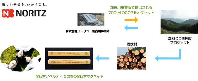 株式会社ノーリツ様が、「株式会社ノーリツ加古川事業所地球の笑顔~森林育成~プロジェクト」のCSRへの取組みで、加古川事業所から排出されるCO2削減に森林カーボンオフセットサービスを利用します。