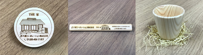 森林カーボンオフセットサービスをご利用いただく企業様には、森林整備により搬出される間伐材を利用したノベルティをご利用いただけます。森林環境の保全への取り組みを視覚など五感で感じていただくようにPRすることができます。