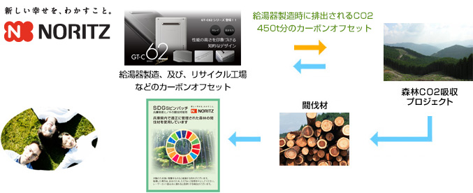 株式会社ノーリツ 地球の笑顔~森林育成~プロジェクト 給湯器製造時のCO2のカーボン・オフセット(2025年1月~2025年12月製造のGT-C62シリーズ、およびハイブリッド給湯・暖房システム等)