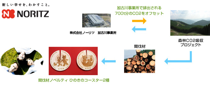 株式会社ノーリツ様が、「株式会社ノーリツ加古川事業所地球の笑顔~森林育成~プロジェクト」のCSRへの取組みで、加古川事業所から排出されるCO2削減に森林カーボンオフセットサービスを利用します。