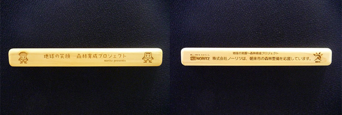 森林カーボンオフセットサービスをご利用いただく企業様には、森林整備により搬出される間伐材を利用したノベルティをご利用いただけます。森林環境の保全への取り組みを視覚など五感で感じていただくようにPRすることができます。