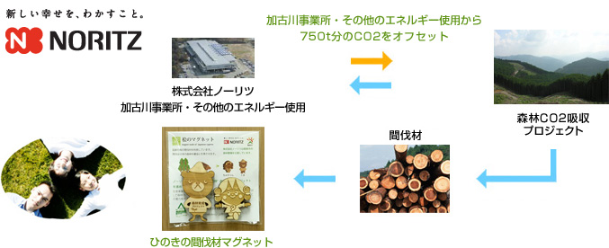 株式会社ノーリツ様が、「株式会社ノーリツ 地球の笑顔~森林育成~プロジェクト」のCSRへの取組みで、加古川事業所・その他のエネルギー使用から排出されるCO2削減に森林カーボンオフセットサービスを利用します。